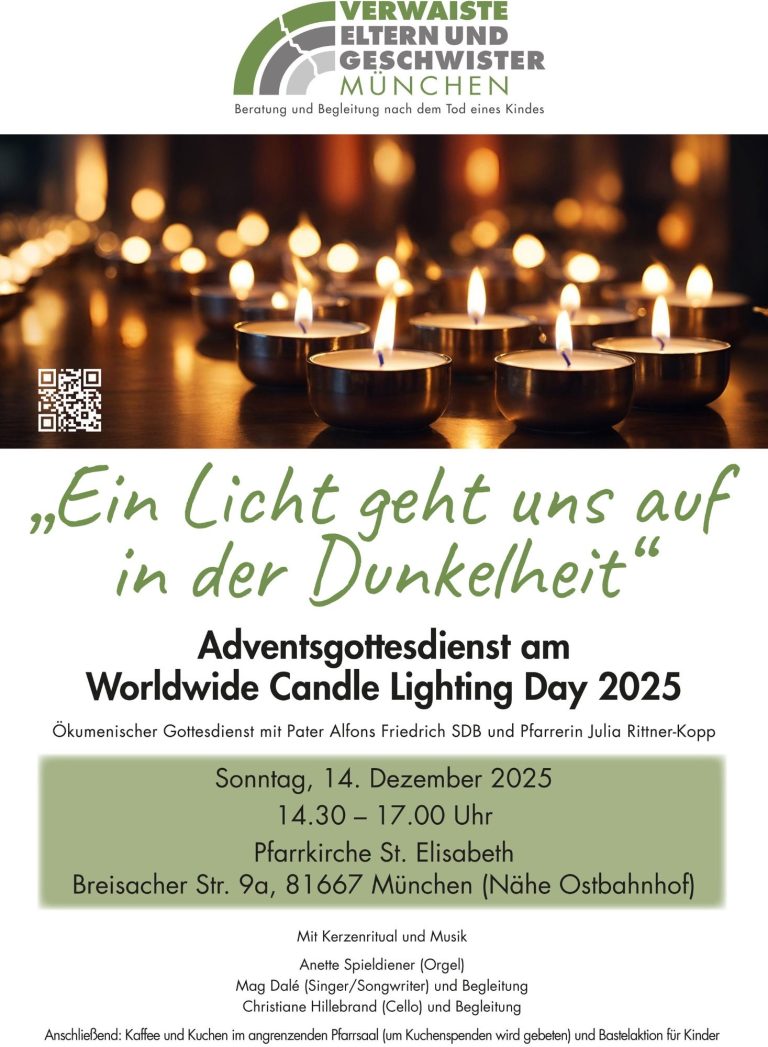 Die ökumenische Andacht lädt zum gemeinsamen Innehalten und Gedenken ein mit Entzünden der „Goldlichter“, besinnlichen Texten, Beschriften von Holzherzen mit wunderschöner musikalischen Begleitung.